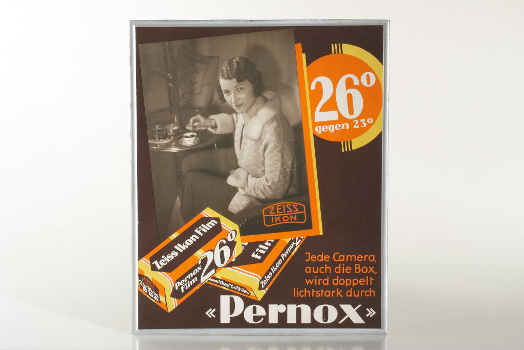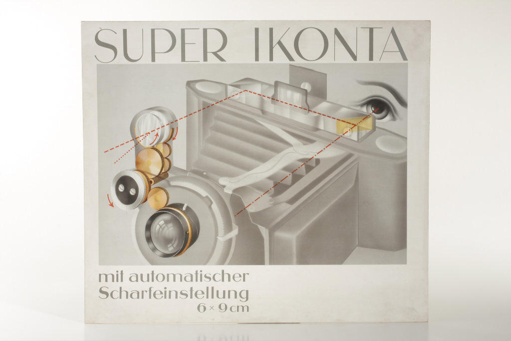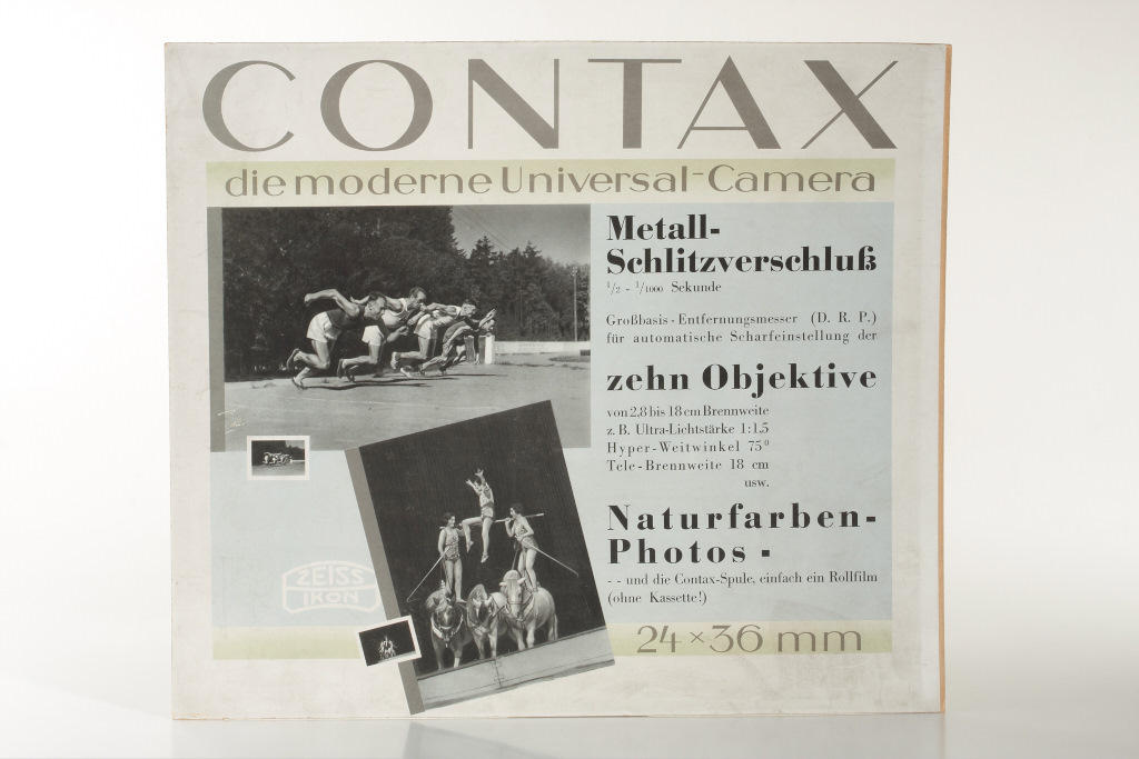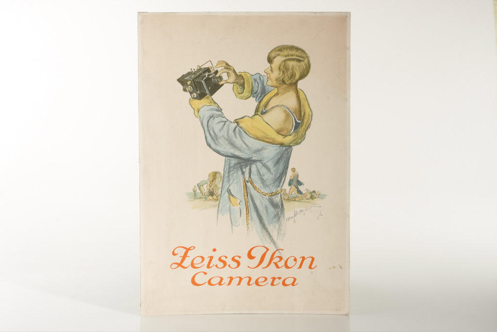 (1) Zeiss Ikon Camera advertising laminated on cardboard, 1927 (size 45.5x31.5cm), (2) Super Ikonta advertising illustrating the function of the rangefinder, laminated on cardboard (size 45.5x51.5cm), (3) Contax advertising laminated on cardboard (size 45.5x52cm), (4) Zeiss Ikon "Pernox" Film advertising stand (size 37x30cm) - all in fine condition (4)