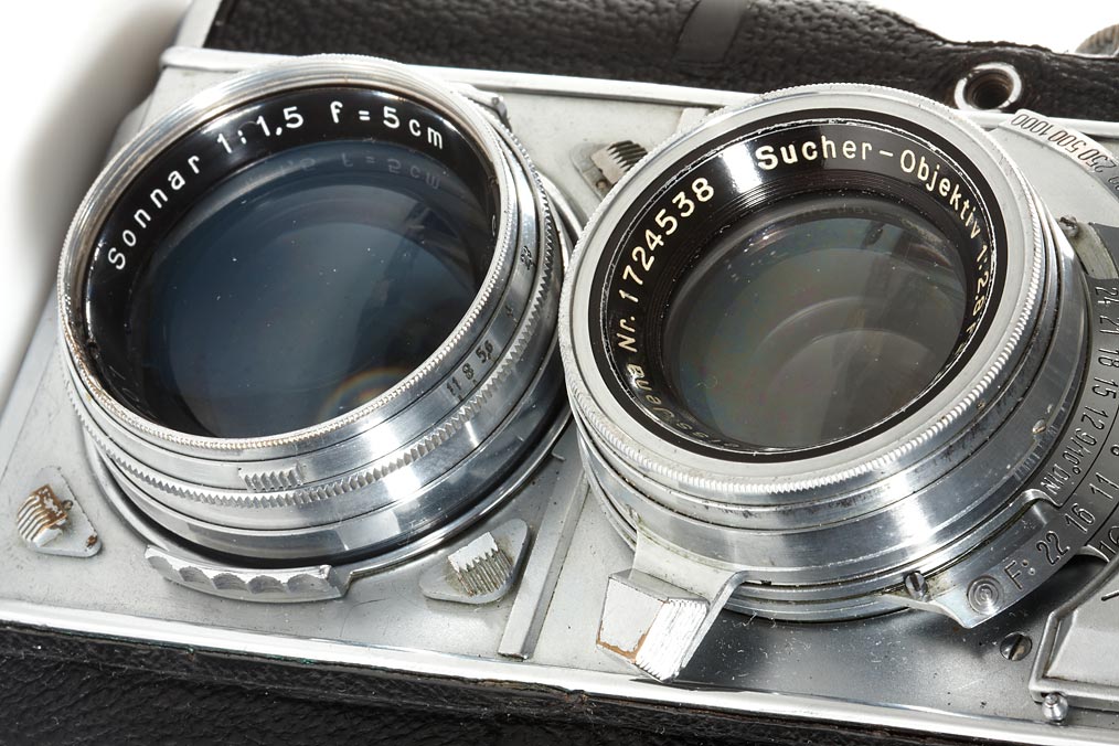 35mm TLR with Sonnar 1.5/5cm no.1628207, original front cap, meter not working
