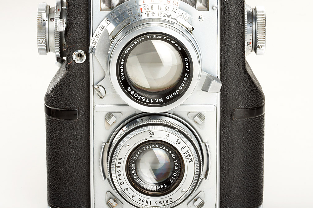 35mm TLR with Tessar 2.8/5cm no.1459017 in fantastic cosmetically condition (with working shutter, meter is not functional), back door with matching serial number, cap, near mint everready case, a copy of the instructions book