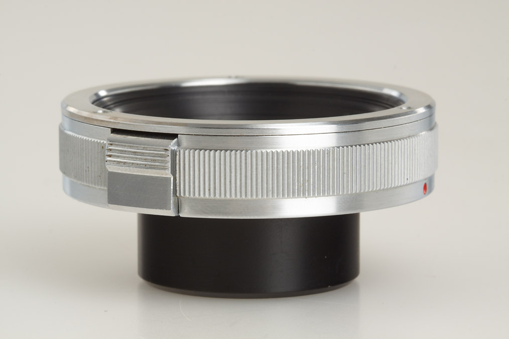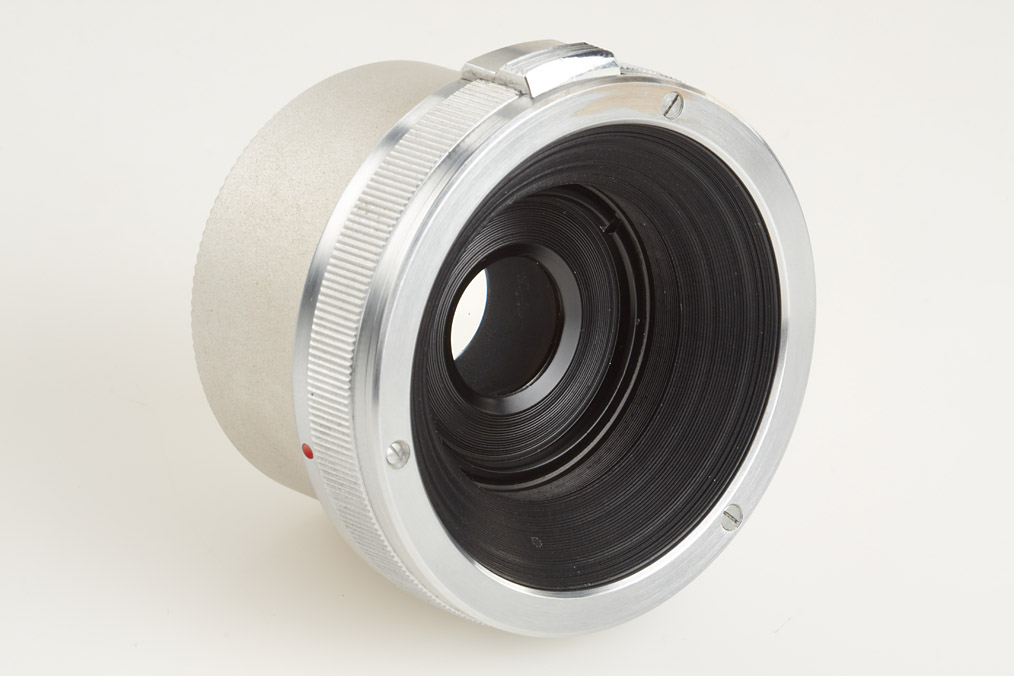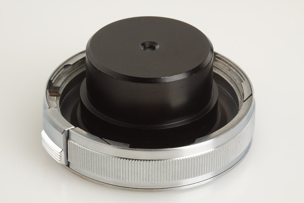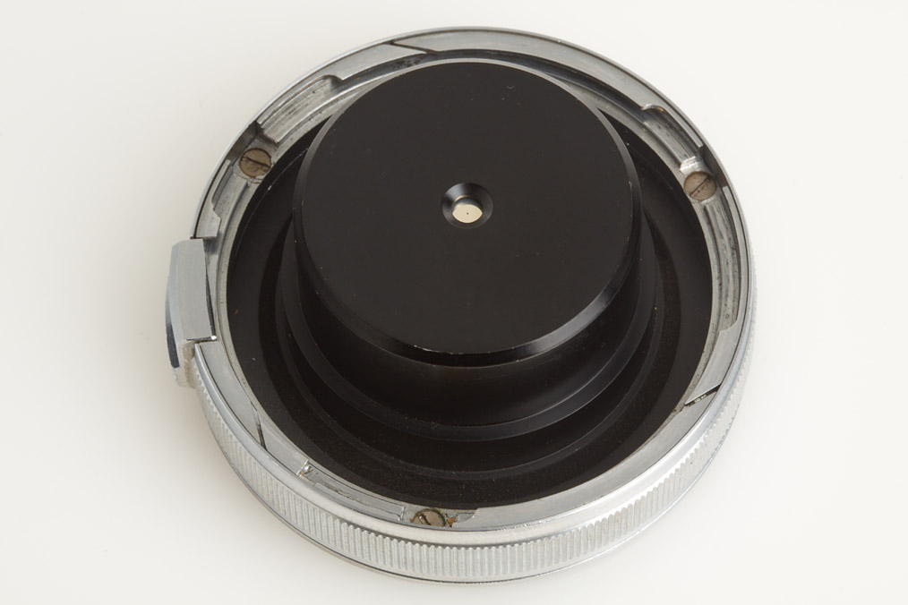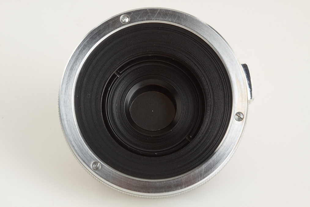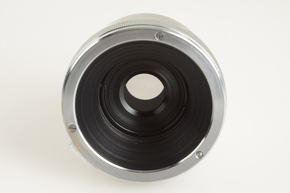 Pinhole lens with focus from very close to infinity, angle of view 80°, the lens consist of a metal coated coplanar disk of optical glass with a tiny hole in its very centre, in a Contax lens mount. This pinhole lens was used to take wide angle pictures with an extreme depth of field. Zeiss Ikon produced only six of these lenses in the early 1950's especially for studies in the field of locomotive design. The lens is described by Wolf Wehran in 'Oldtimer' and illustrated with the famous Contax prototype VK27, rear cap, mint condition