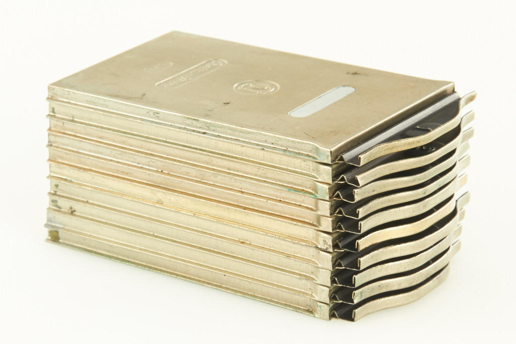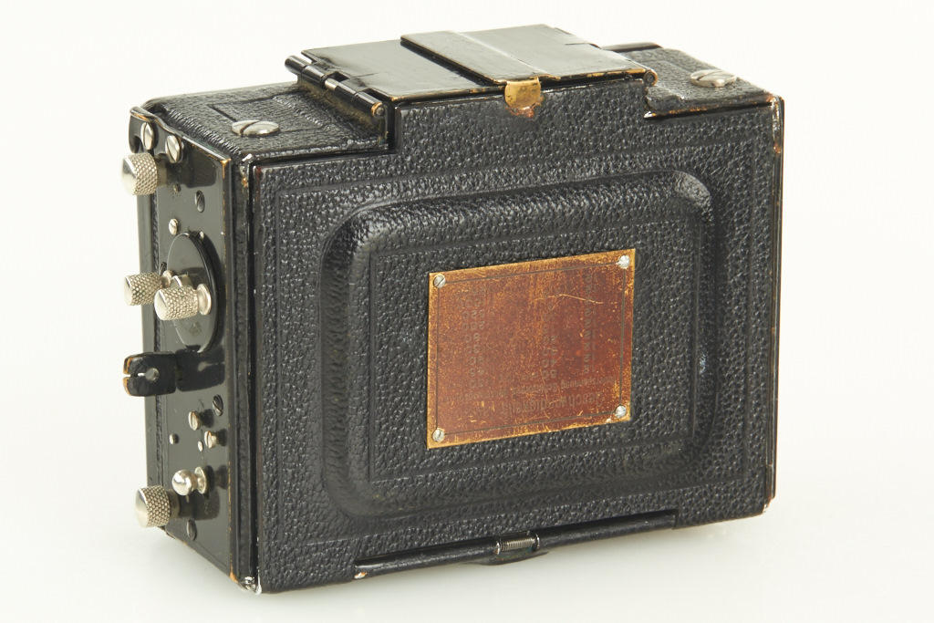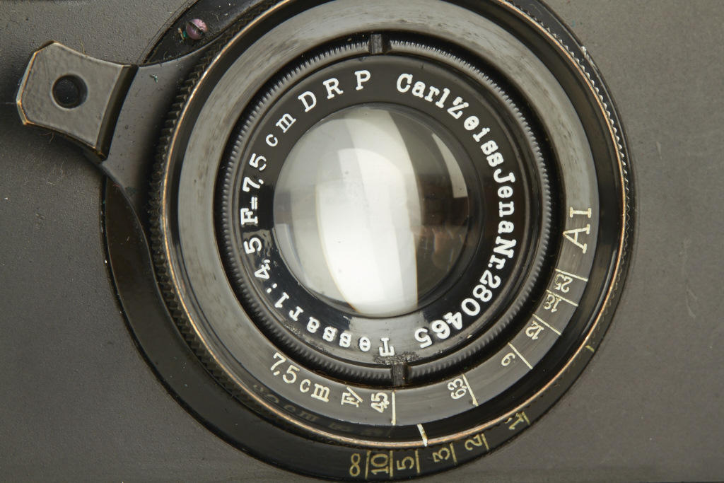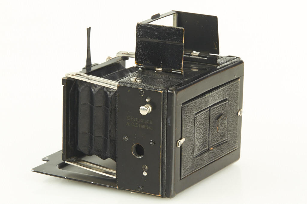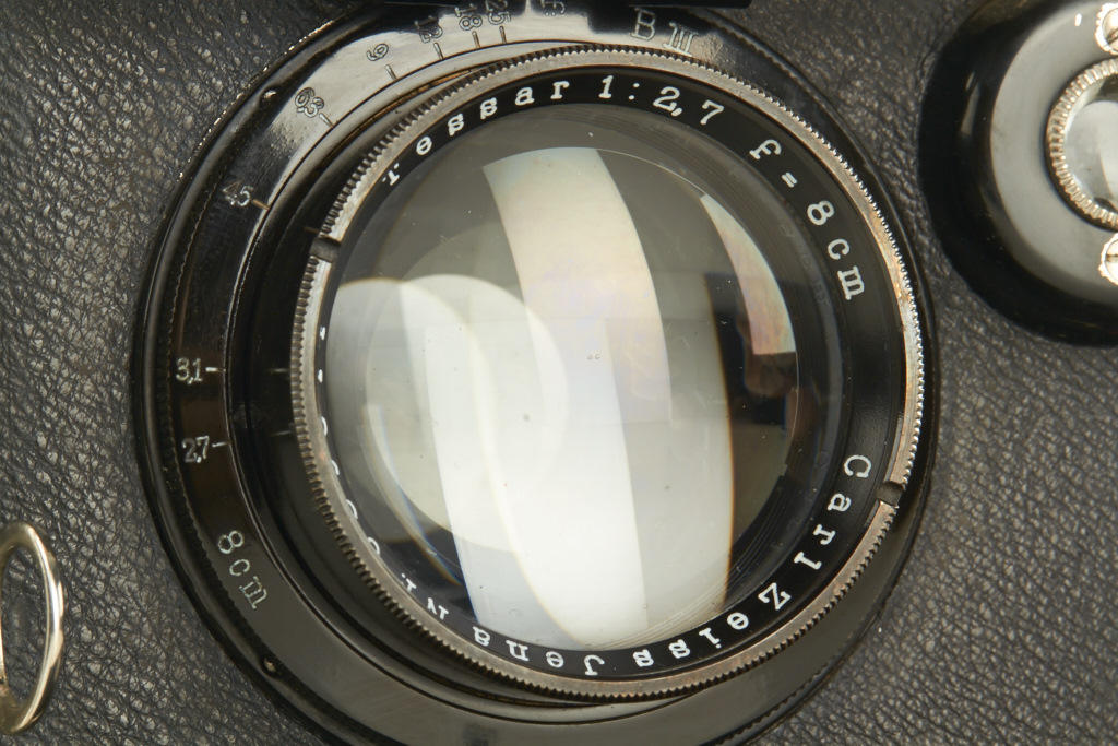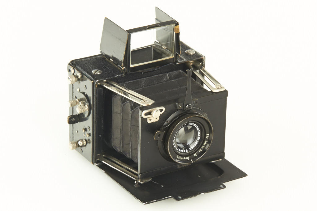 (1) 4.5x6cm, working shutter, dent on top, Tessar 2.7/8cm no.659844, 10 original plates (cond. C), (2) Ernemann Miniatur-Klapp, 4.5x6cm, first version of the strut camera with Tessar 4.5/7.5cm, focal-plane shutter (sticky), in very good original B/A condition (2)