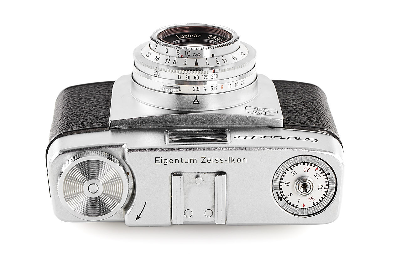 Interesting and rare Continette, simple compact 35mm camera without rangefinder or lightmeter, with 2.8/45mm Lucinar (only used on this model), top plate engraved with 'Eingentum Zeiss Ikon', property of Zeiss Ikon, in mint condition and working order.