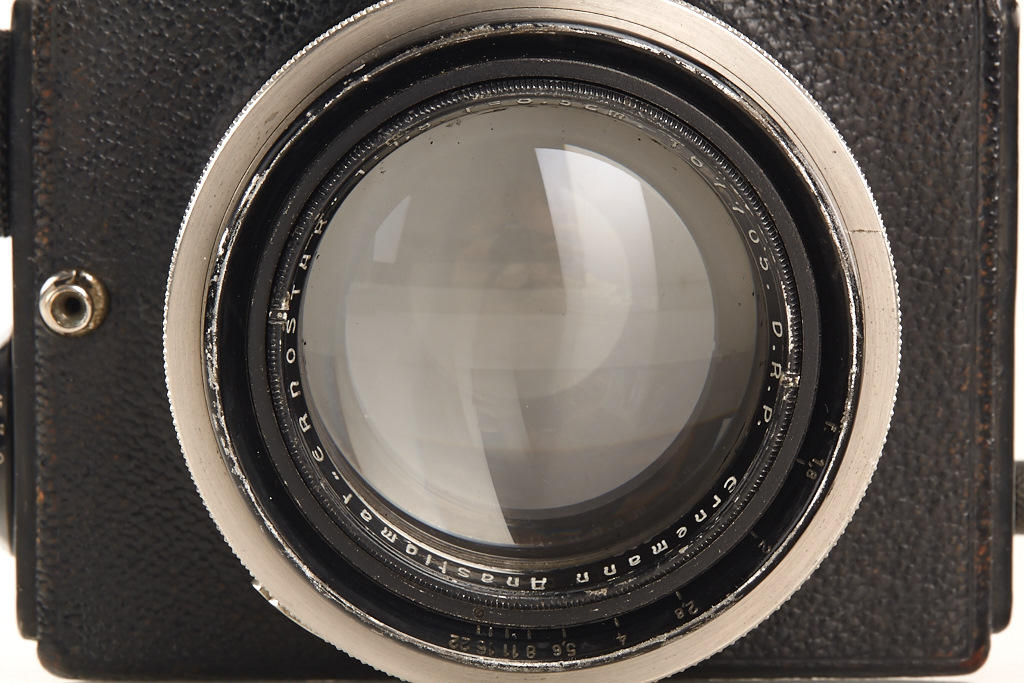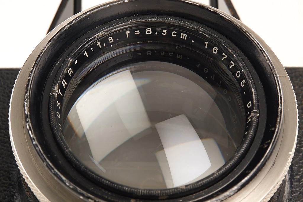 4.5x6cm, early Ermanox by Zeiss with Ernostar 1.8/8.5cm no.167705 in good condition, working focal plane shutter, serial number inside erased