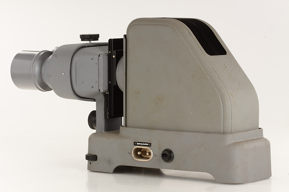 rare projector with attachments for normal and stereo projection, three Orikar 2.5/100mm lenses (two with polarisation filters), several stereo glasses, masks and small accessories, in fitted carrying case