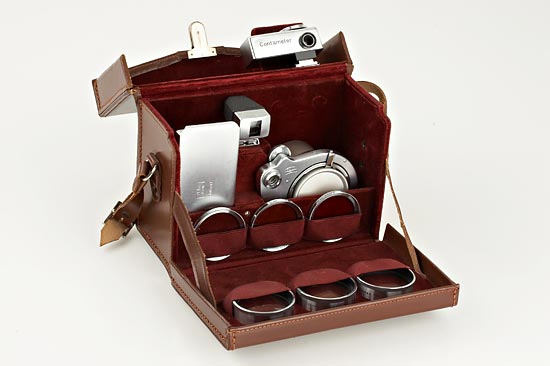 mint post-war Stereotar C with prism, lens, all cap, finder, Contameter, all 3 Proxar lenses, UV, yellow and red filter, in matching outfit case