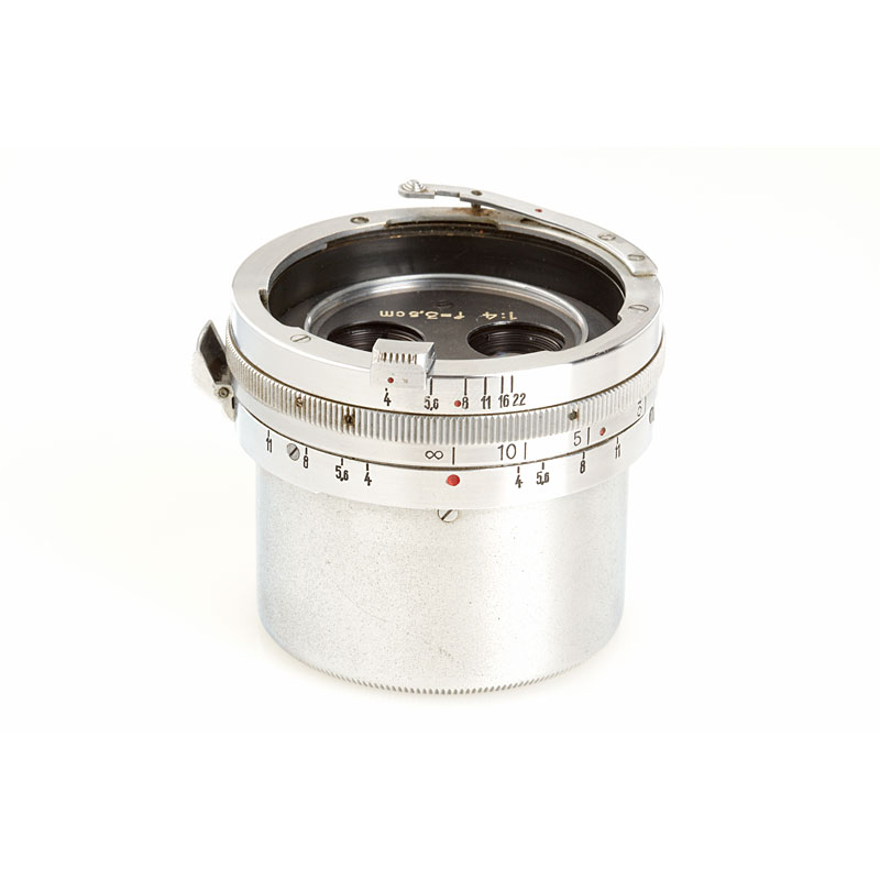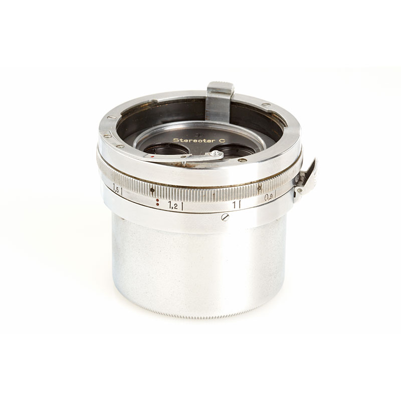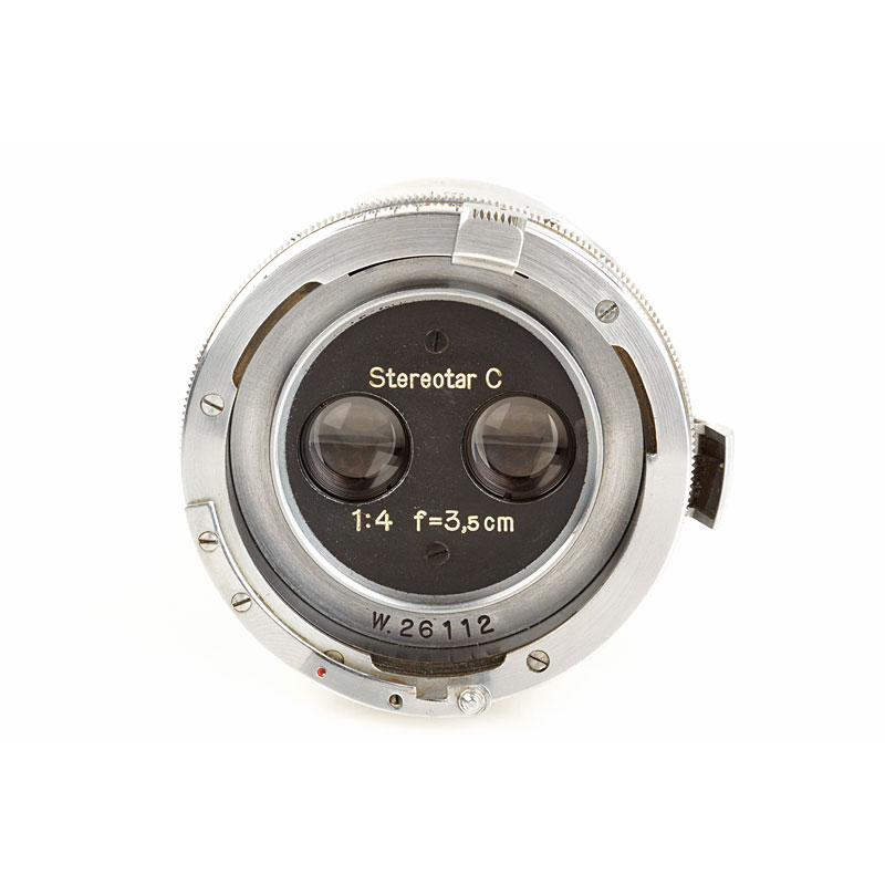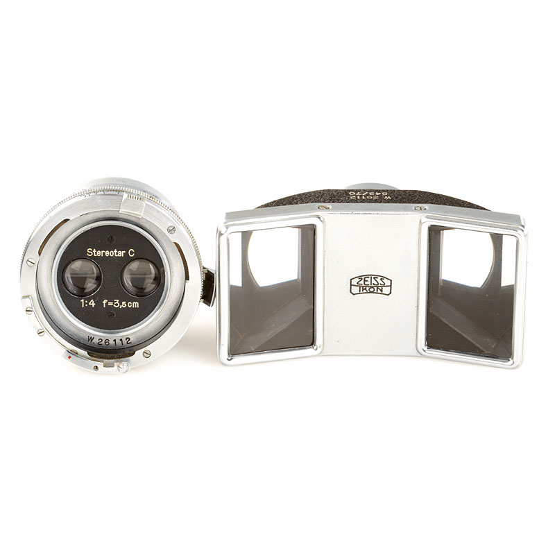very rare wartime stereo lens for Contax with prism 543/70 no.W.26112 (caps) and very rare stereo close-up lens (engraved '5D'), in original case