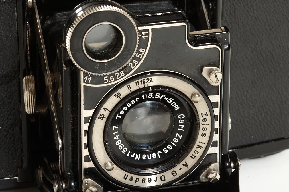 very early Super Nettel no.X.93708 with Tessar 3.5/5cm no.1398417 (lens no.117 delivered for Super-Nettel), Super Nettel no.Y.61524 with Tessar 3.5/5cm no.1409313, both cameras with nickel fittings (the shutter of both cameras need attention)