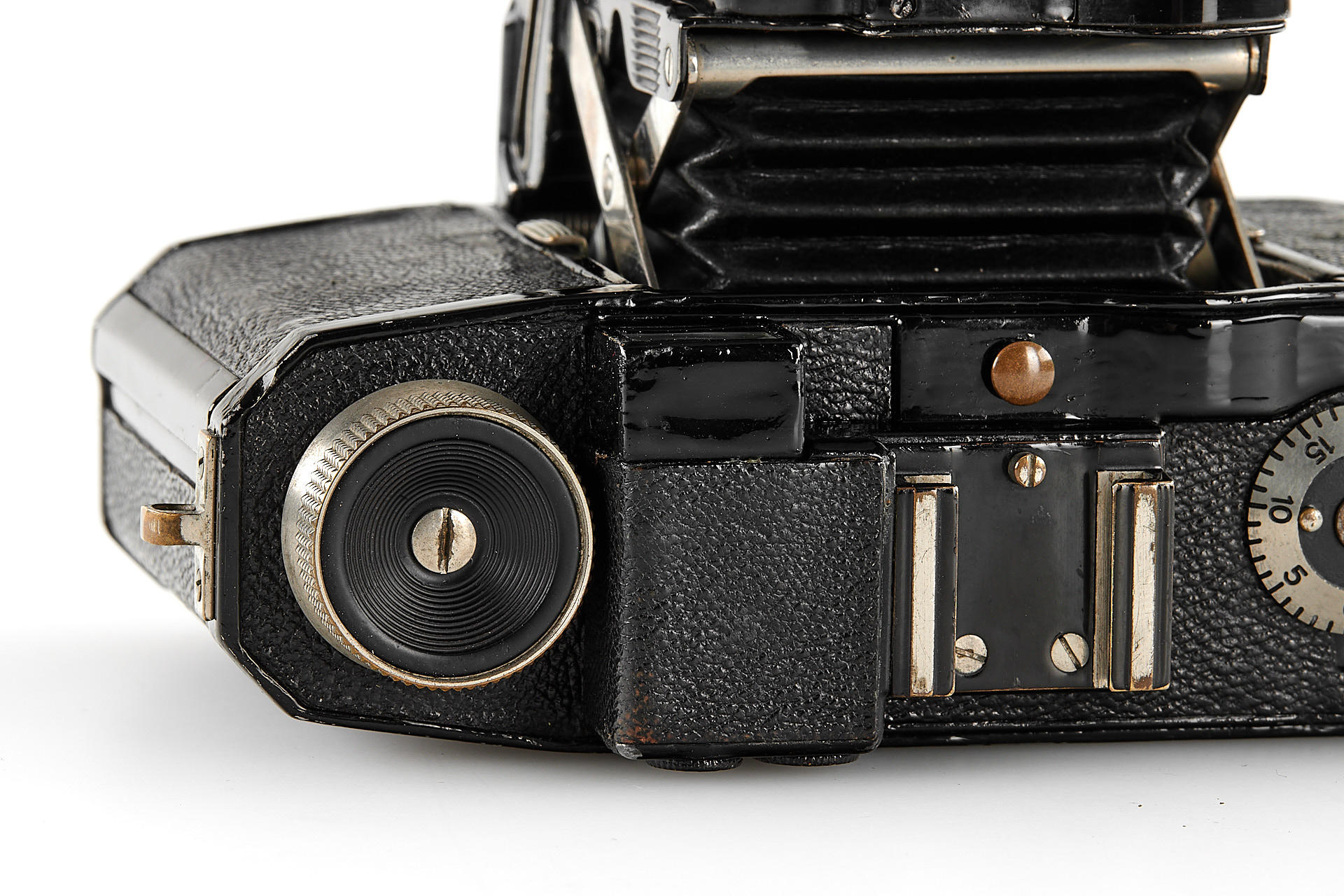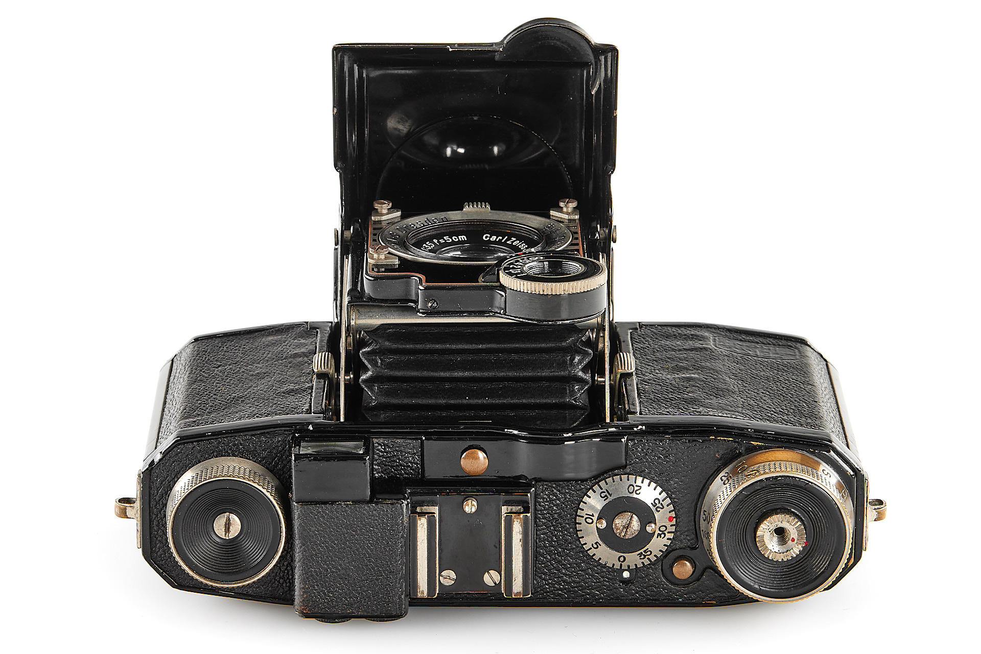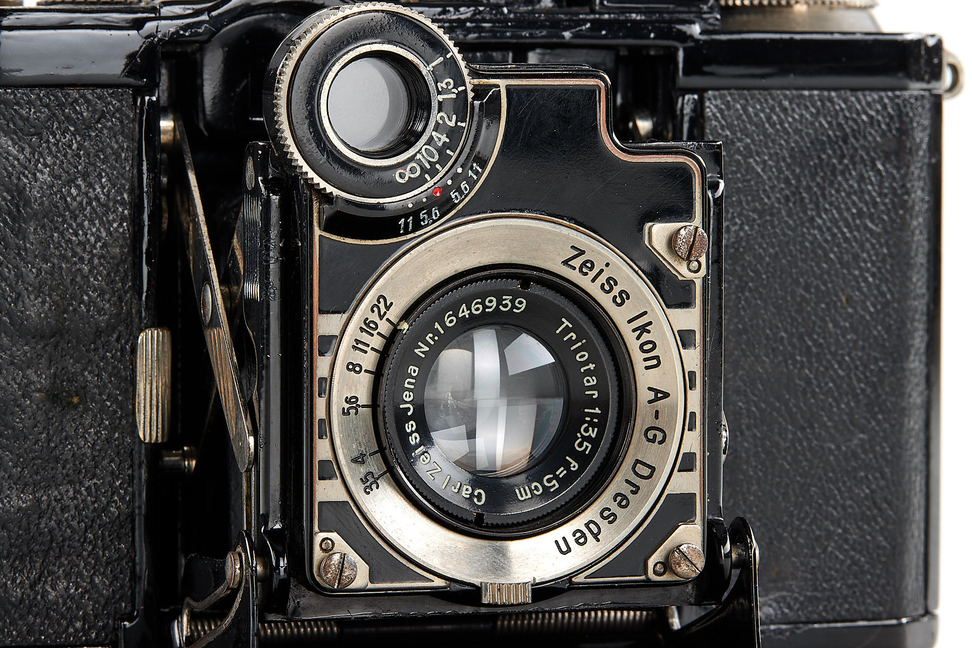 Uncommon folding 35mm rangefinder camera, black/nickel version with black focusing scale, in good condition, with Triotar 3.5/5cm no.1646939