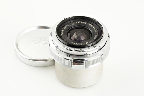 for Contax, this is prototype no.1 (out of 5) of the 21mm Biogon in mint condition, both caps (this specific lens is reproduced in Kuc II, page 74)