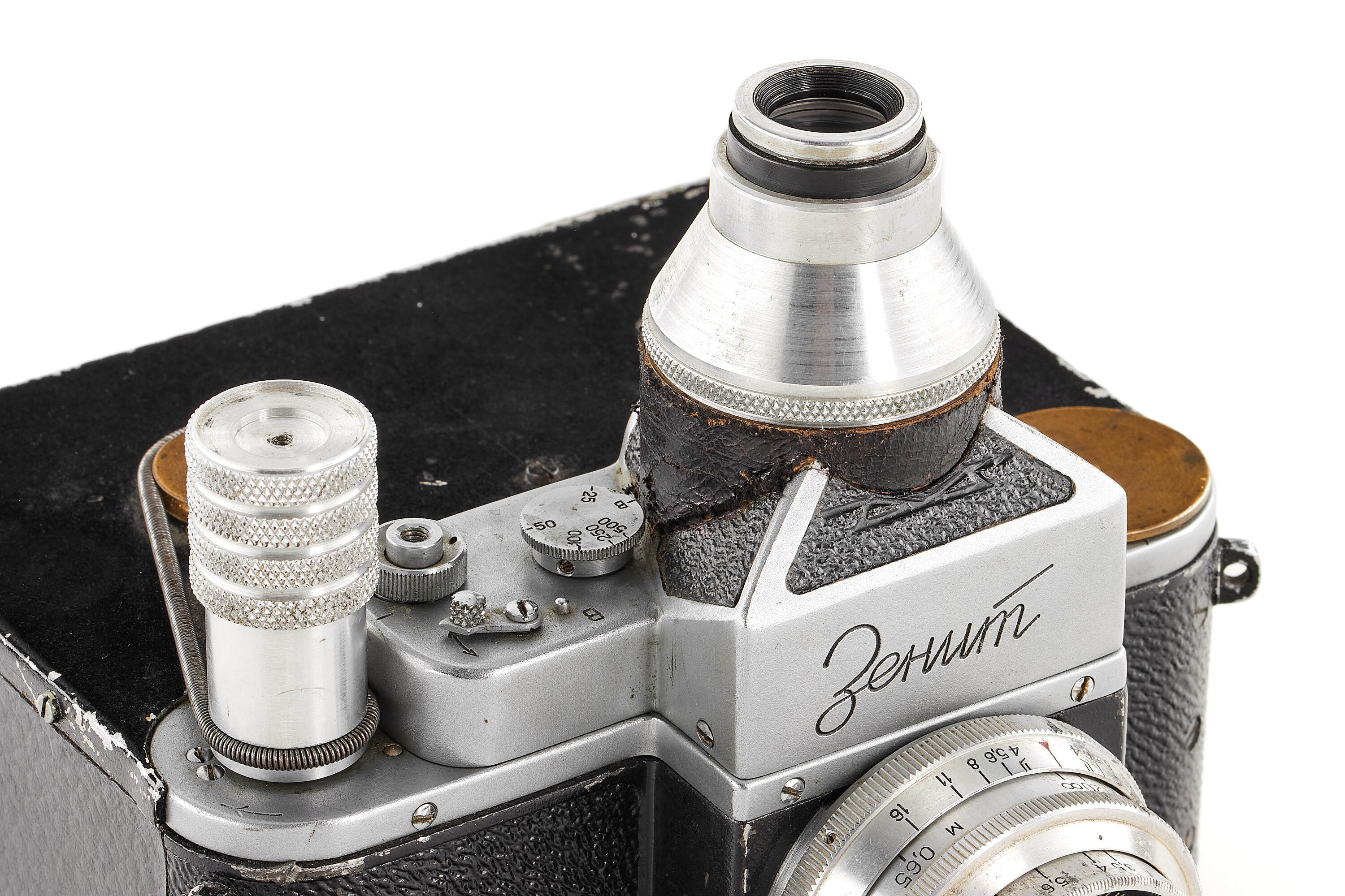 A rare prototype Zenit camera, developed on commission for the KGB to archive classified documents. While standard Zenit cameras of the period used 135 film with 36 exposures, competing manufacturers had already introduced models capable of 250 exposures. To match this, the Krasnogorsk factory was tasked with creating a 250-exposure version of the Zenit.