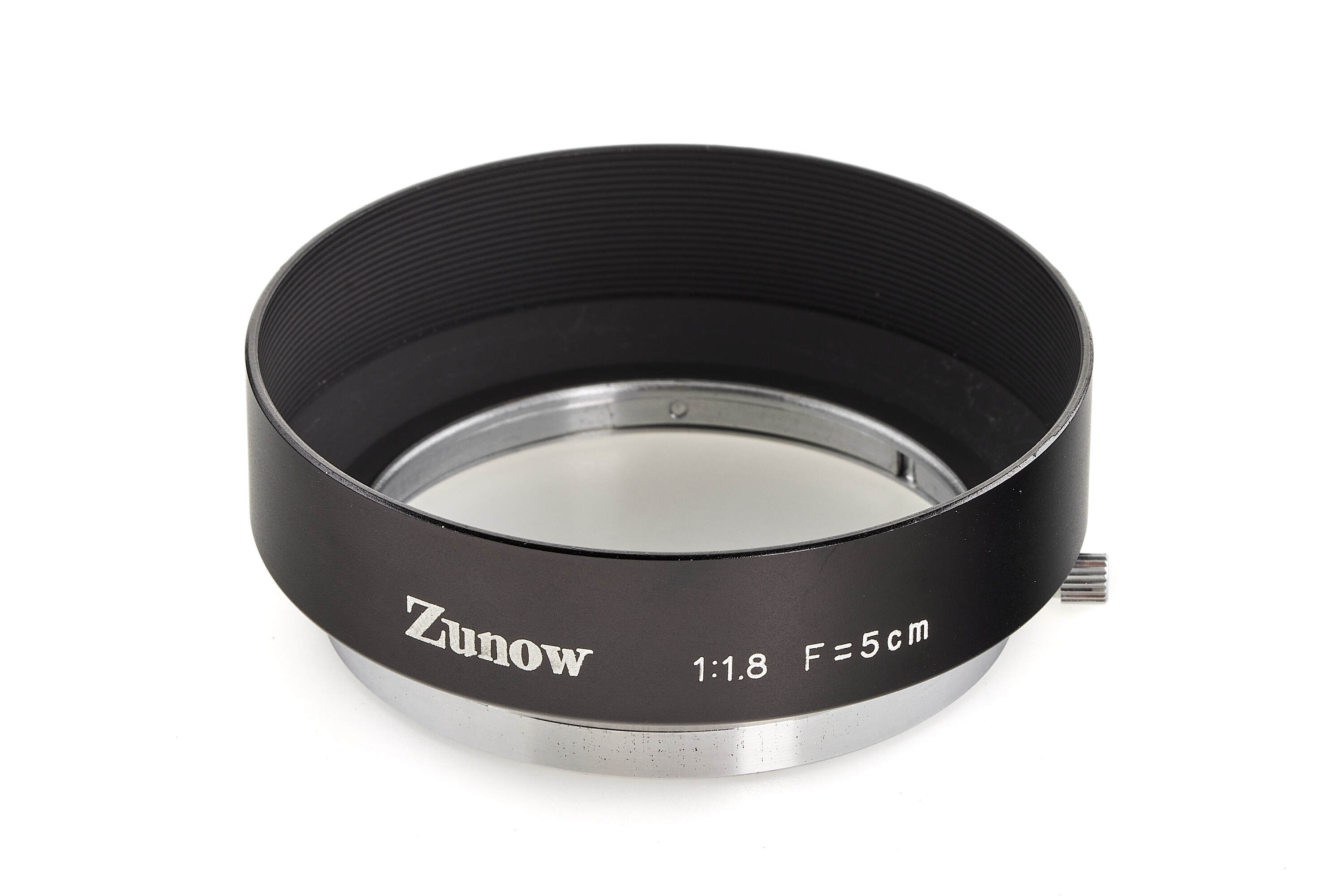 Very rare, original hood for Zunow 2.8/3.5cm Zunowflex SLR lens. In beautiful, near-mint condition, with original leather case.