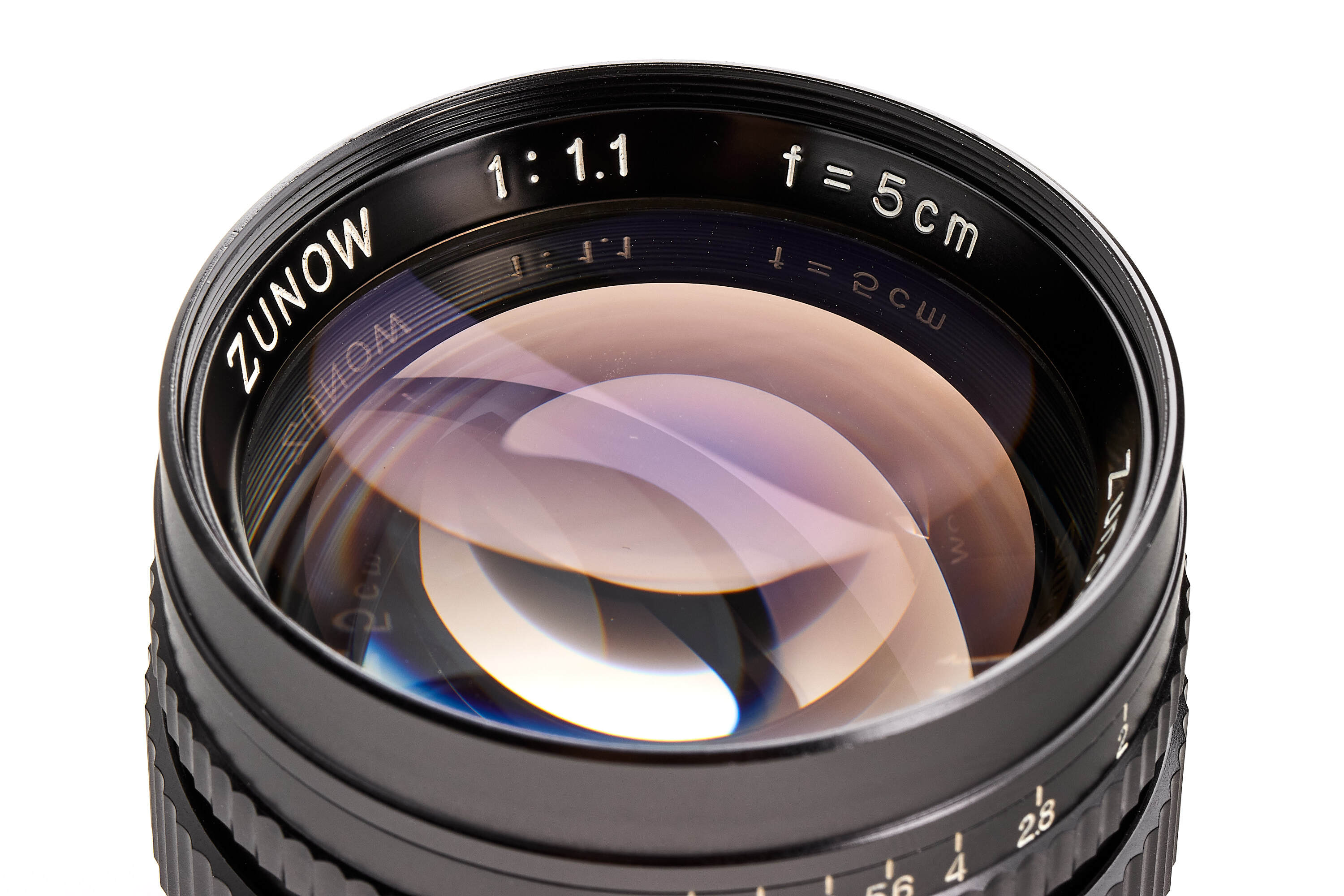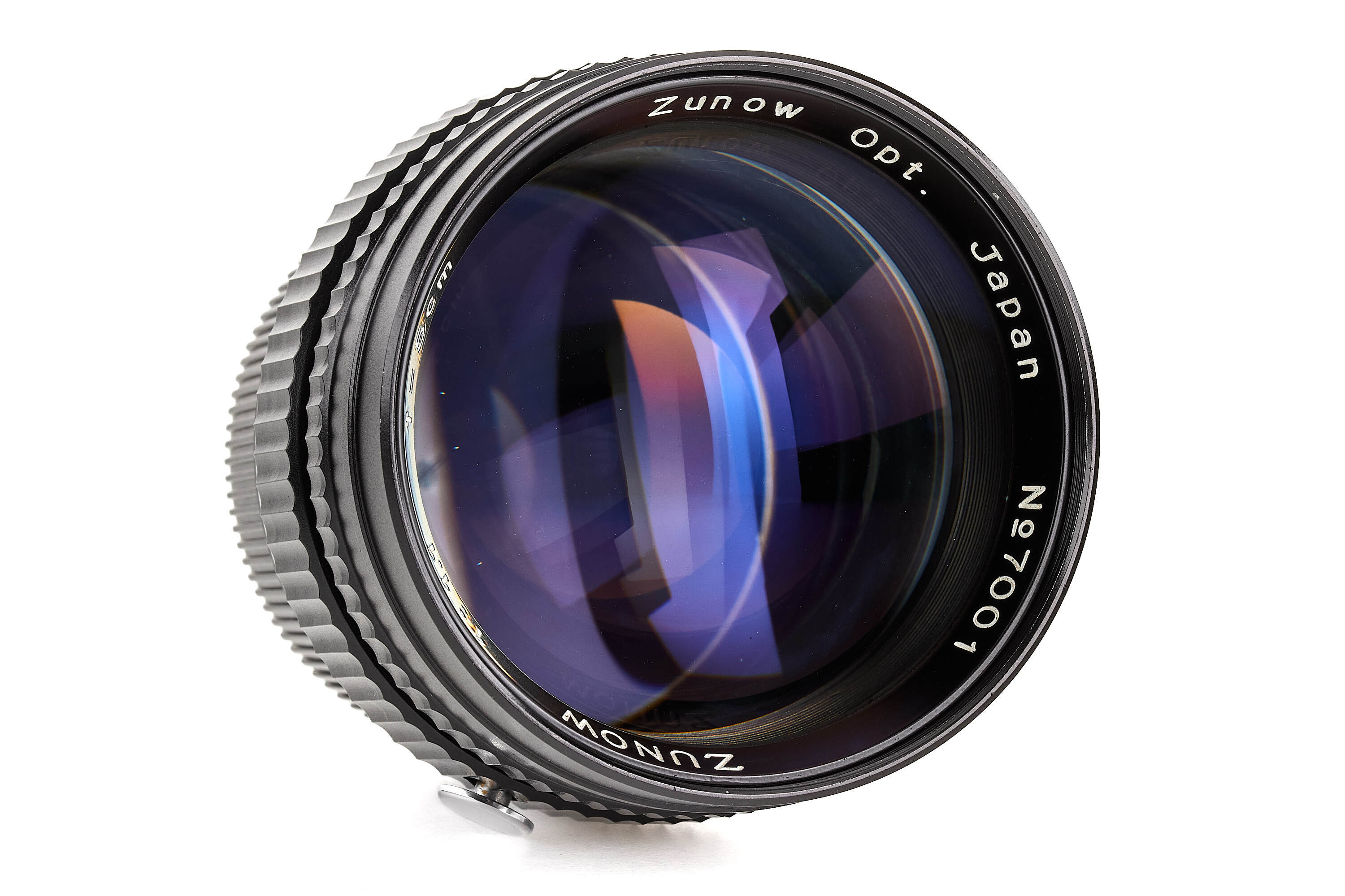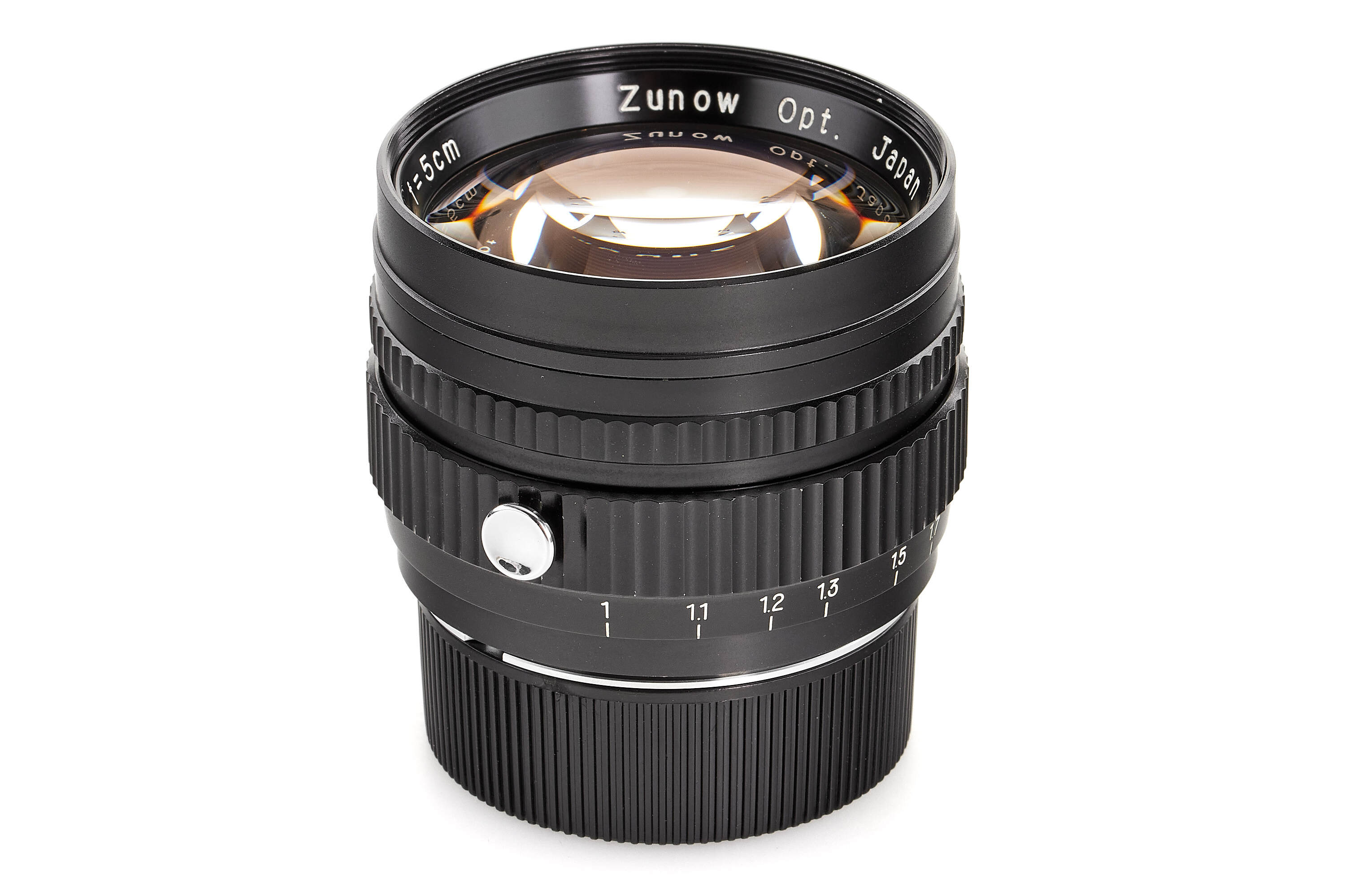 An extremely rare, last version of the famous ultra-fast Zunow 1.1/5cm, in all-black finish and with a more streamlined, compact design. Only a few of these special lenses are known to exist. The offered example no.7001 is the first lens of the series and is in beautiful, almost mint condition, with good optics (small scratch on the rear element - not affecting the photos). It comes with an original front cap. A true landmark in post-war Japanese optical design, it is a prized piece for discerning collectors and a highly sought-after lens among photographers.